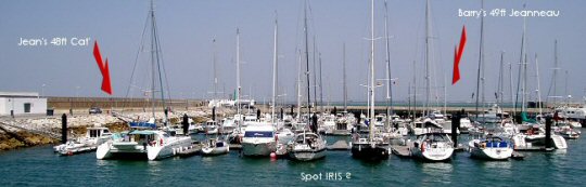 Simon and I went to the marina cafe and had some toast and coffee, I paid up for our berth for the past 7 days and we went back to the boat. The wind has almost dropped to nothing and the plan is to have a go at getting to Gibraltar leaving in the small hours of Thursday morning, arriving sometime in the afternoon. Ate on-board Iris and got ready for an early(ish) start. We've met a French guy called Marc who has just bought a Jeanneau 42 and is taking her back to Montpelier with a fiend. And there is a pleasant nutter who is also French and has sailed in solo from Antigua who are both in the marina waiting to go. Another English couple Tim and Jo arrived recently and we have agreed that the four (boats) would sail in convoy down to Barbate. We settled it over a few drinks on Marcs boat.