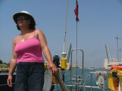 Woke to find that my swimming costume had been blown overboard and was now sitting in 3 metres of water beneath the keel, Liz donned her swimming costume and retrieved it for me. I went to the local internet cafe and updated the site, I spent three hours on line using my own PC. In the evening we went for a meal in town at one of the tourist traps and had an average meal followed by a fantastic ice-cream from a 'heladeria' which was recommended to us by Ron.